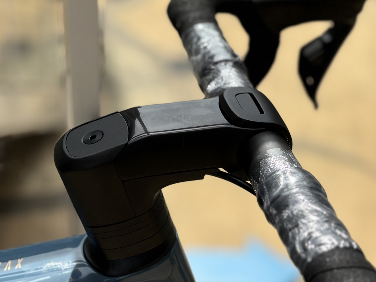 ショートリーチでカーボンハンドルですがどちらかと言えば柔らかめな印象。レースだとやや剛性不足かもですが普段使う上では振動吸収性に優れているので快適ですよ。