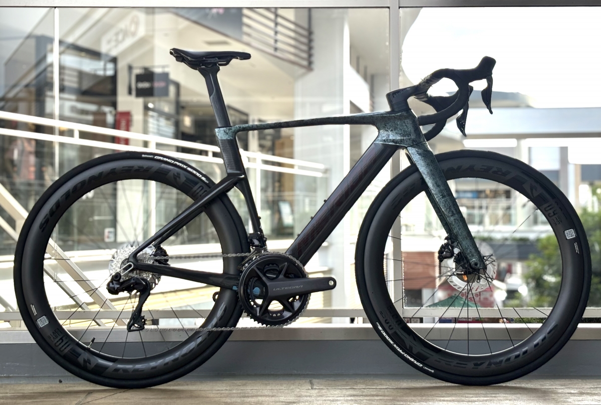 違いはフレーム素材のグレードですね、4000はCF3を使い、9000はCF5。より高剛性な素材になるのでよりレース向けなバイクとなります。
