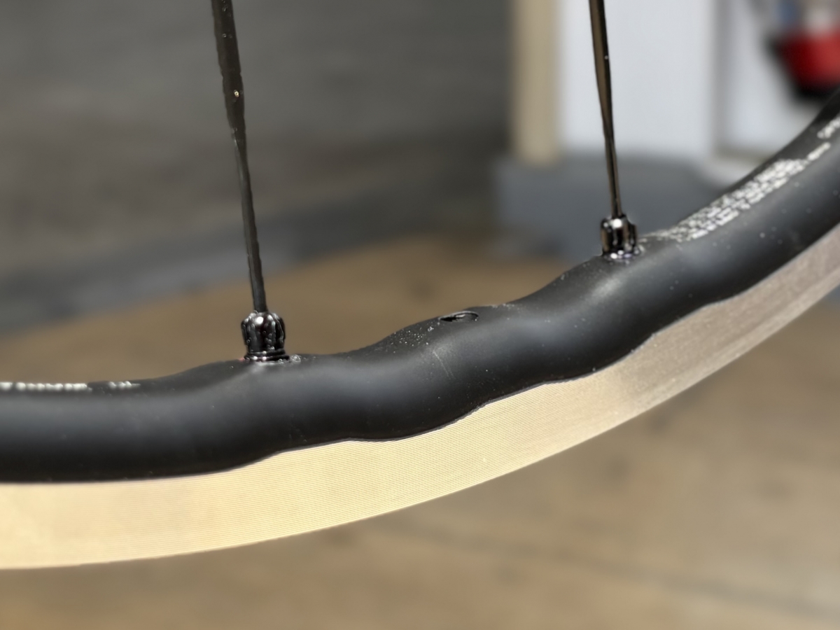 リム全体の重量を軽くするために不要な部分を削り、波打つような形状になっております。