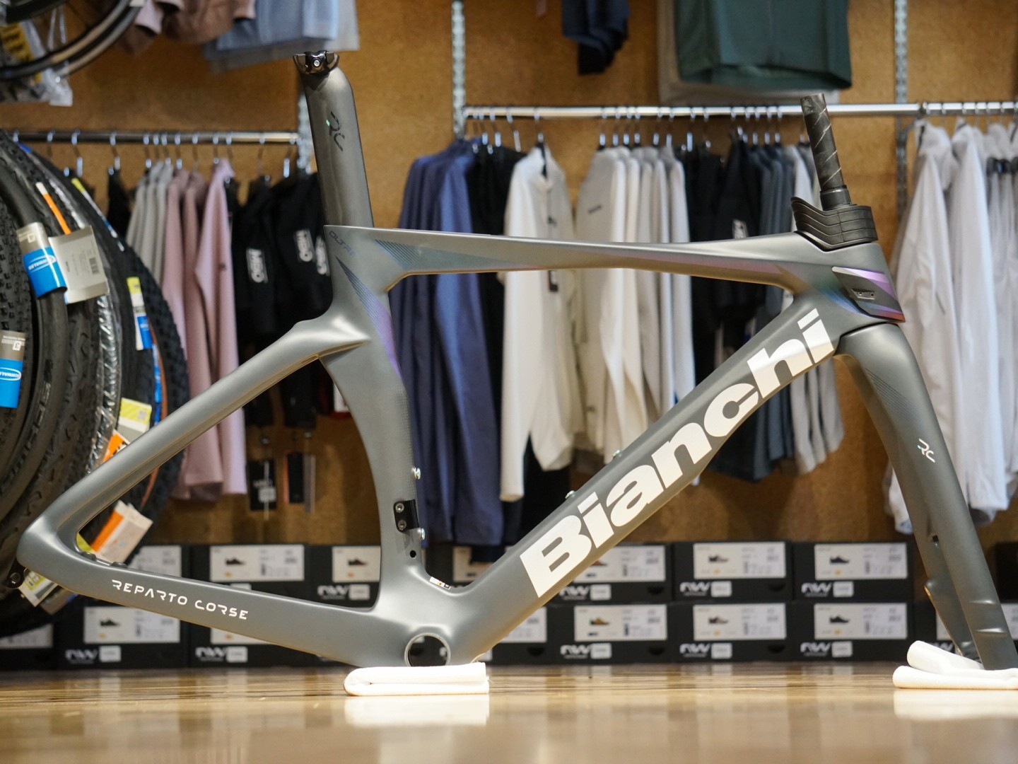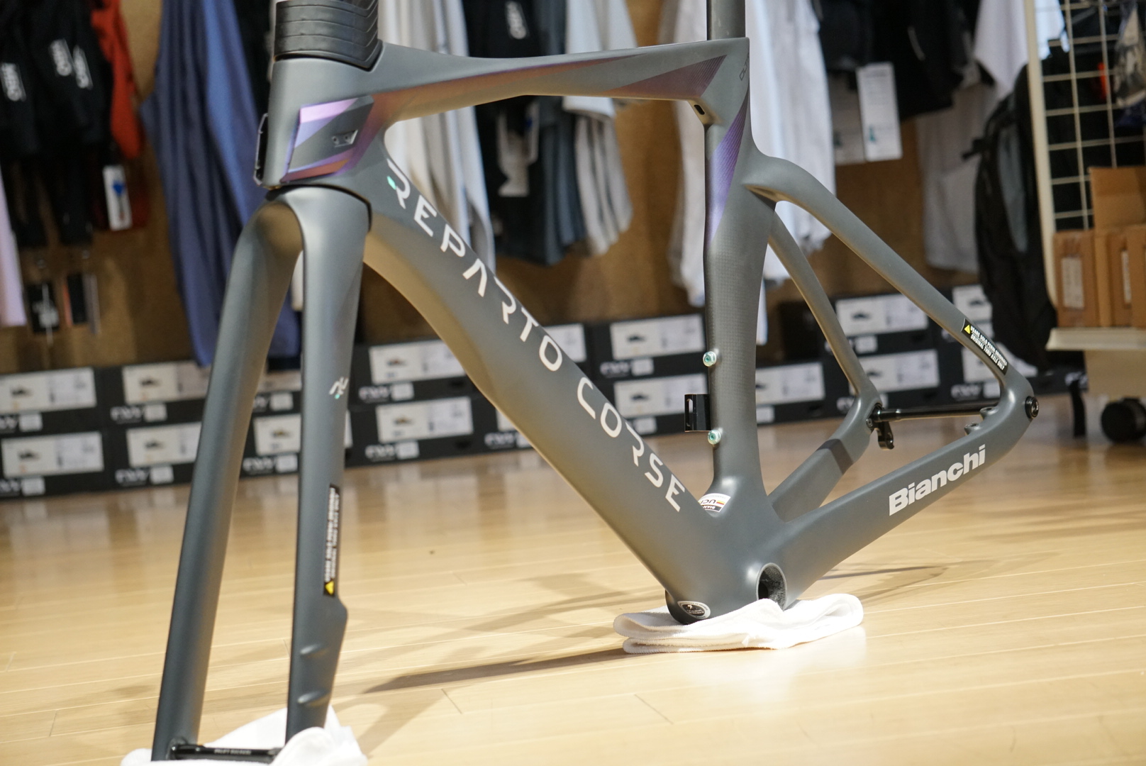 非常に高い人気を誇るエアロロードバイクOLTRE RCの希少なバイオレットカラーのフレームセットがワイズロード金沢野々市店のオープニングセールで大特価です!