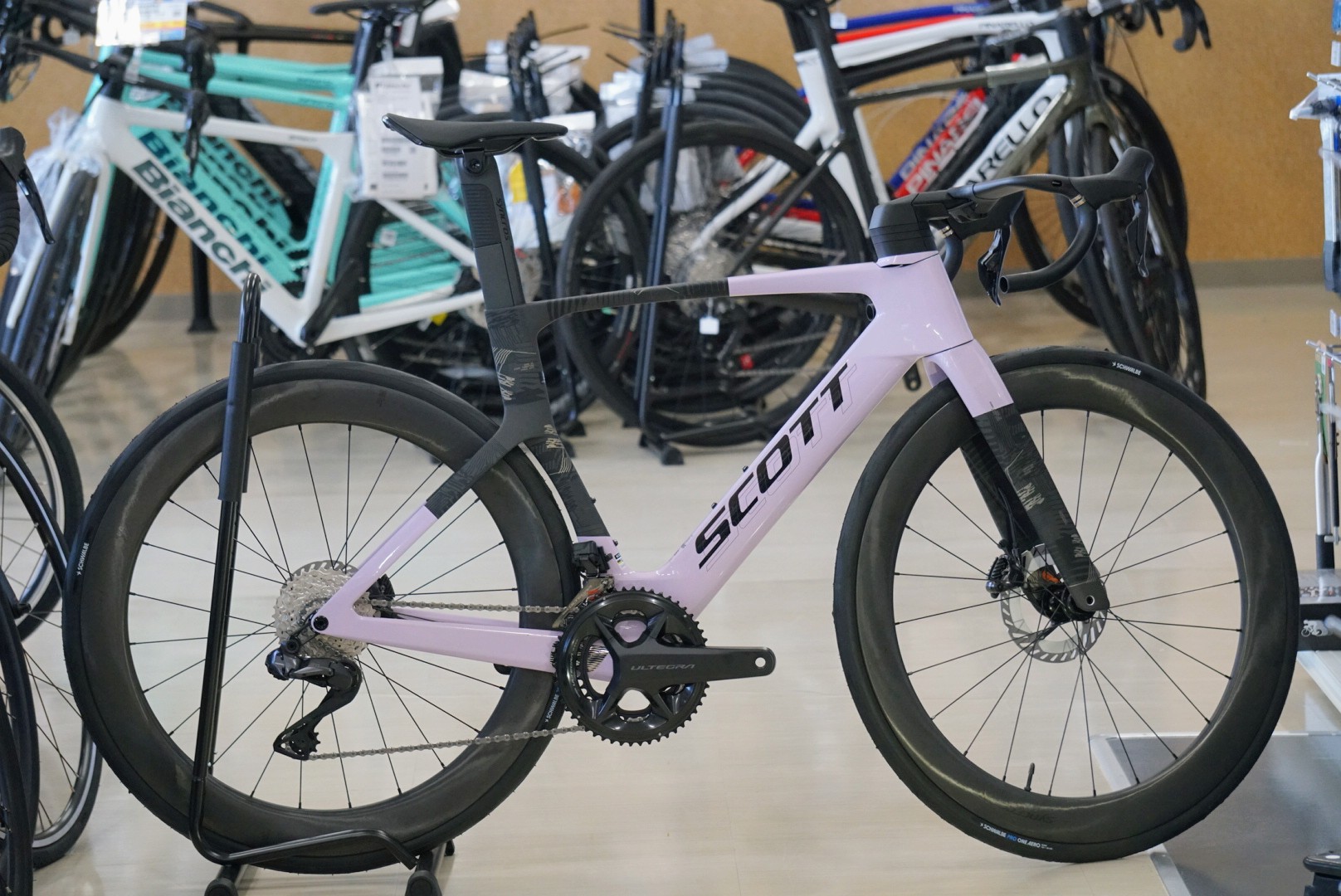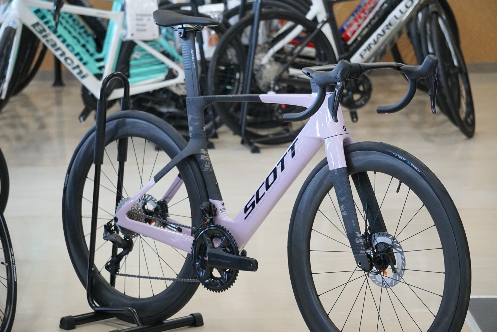 2021年のUCIレギュレーションの変更にともない大きな変貌を遂げ、TTバイクさながらのフォルムとなって空力の最前線を行くSCOTT FOIL RC。