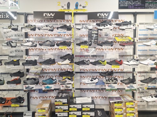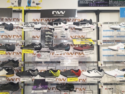 中でもおすすめはNORTHWAVE。ロードバイクシューズだけではなく、スノーボードシューズなどのカテゴリーでも最新のプロダクトと機能性を誇るシューズを生み出し続ける人気ブランドで、川崎ウェア館でも欠かせないブランドです。
