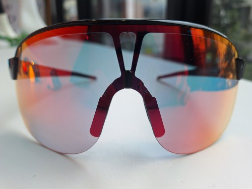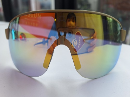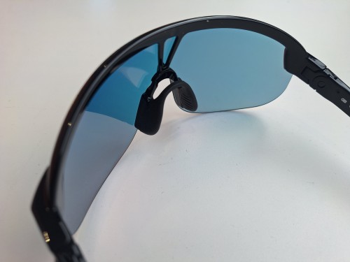 テンプルは縦方向に3段階稼働し、額とレンズ上部、頬とレンズ下部の距離を調整することができます。かっちりとした装着感で安定感が強く、ライドに集中できるのも魅力です。