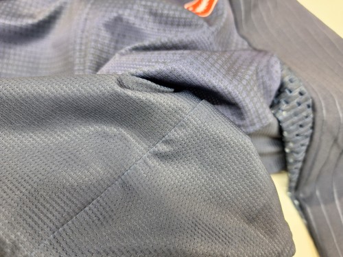 肘まで伸びる伸縮スリーブはエアロ効果を意識した設計。肩のリブ編み素材は、レーススピードで最大のエアロ性能と優位性を発揮するよう特別にデザインされており、これまでのエアロジャージに比べて空気抵抗を最大で6%削減することに成功しています。