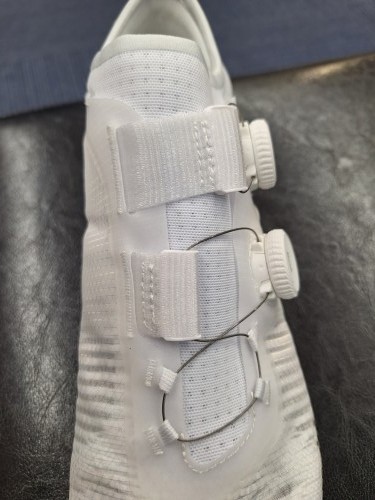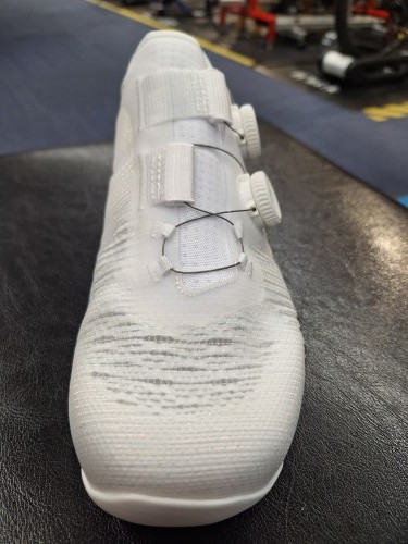 メッシュ素材の柔軟性と非常に相性が良く、自分の足の形に合わせてシューズを細かく調整でき、長時間のライドでも最適なサポートを維持できます。重量はサイズ42で239g。
