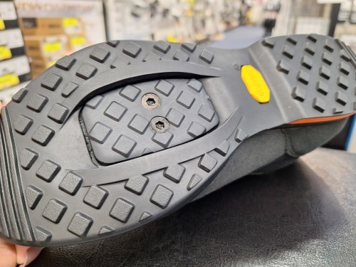対応する規格はSPD。街乗りや通勤、サイクリングなど、自転車から降りてそのままのシューズで移動したい方におすすめの2つ穴モデルです。こちらのRAMBLE VRはクリート取付部分に蓋が付いています。