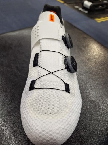 柔らかなニット素材との相性がよく、足の形にフィットした感覚を体感しやすいです。ダイアルの位置の見直しとワイヤールーティーンを広範囲に変更することで、独特のホールド感を高めます。