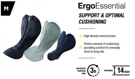 パッドはマルチレイヤーのエルゴ・エッセンシャル・インサート。サドルのクッション性とサポート性を最大限に高めるよう、2つの異なる密度とクッション性を備えています。