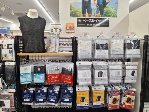川崎ウェア館のインナーウェアコーナーに在庫中。ヨーロッパのサイズなので、普段よりサイズを1つ下げるのがおすすめです。モデルによってはご試着用もご用意しておりますので、サイズや肌触りが確認したい方はお気軽に。