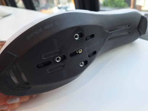 アウトソールの剛性は15。100%ユニディレクショナル・カーボン製の革新的なパワーシェイプHTソールです。