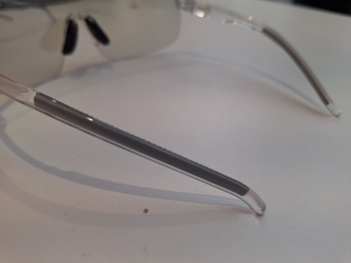 テンプルは可能な限り無駄を削いだ細身のものにソフトパッドを組み合わせ、軽量さとズレにくさを両立しています。ノーズパッドも3段階で高さ調整が可能となっています。