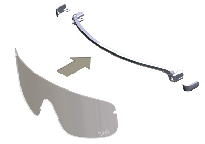 NXT薄型レンズに適度な弾性を持たせ、軽量性を維持しながら、あらゆるスポーツに適した装着感を実現するため、レンズとフレームを、特殊材料を用いて接着しています。