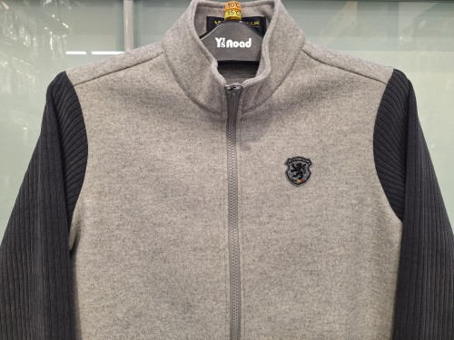 身頃はダブルニットにニードルパンチ加工をすることによって、ウールのような風合いに。