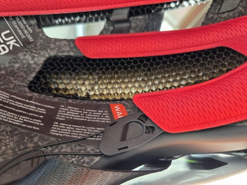 Koroyd®社と共同開発した保護機構を採用しています。衝撃を受けやすい前面と側面部分に細長いチューブがハニカム状に熱溶接されたナノチューブ・プレートをインサートした全く新しいシステムです。