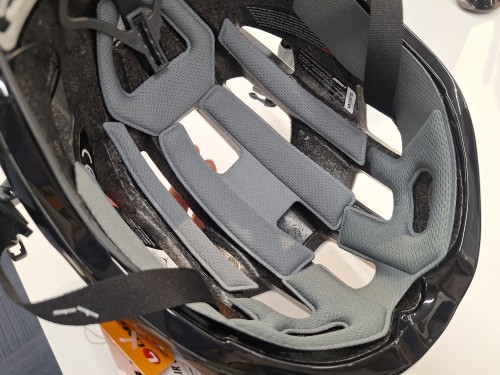 フィットシステムは新しいAIR FIT EVO調整システムを採用し、5段階の高さ調整と水平方向の調整が可能です。非アレルギー性の処理済みパッドが頭をドライに保ちます。