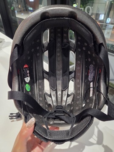 カジュアルなヘルメットには通気口が無かったり、あっても穴がかなり小さいものが多いですが、こちらは中央にしっかりと大き目の通気口を設けることで、風を取り込み熱の籠りを抑え、快適なライドへと導きます。