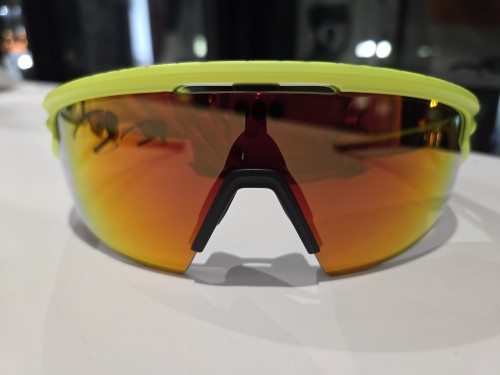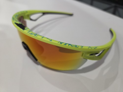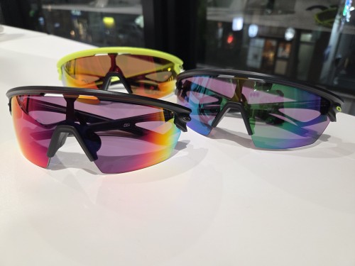 スポーツバイクだけではなくあらゆるスポーツの動きもカバーするフィット感は、最近のOAKLEYのアイウェアとはまた違い、ベースになったRADER EVのようなカッチリ感のある印象を受けました。顔に沿うような、覆いこむようなレンズは目線の移動もスムーズ。