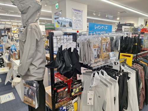 他にも不安定なお天気にあわせてチェックして頂きたいレインウェアコーナーをご用意しております。