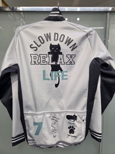 ロゴの後ろからぶら下がるネコと寝ているネコがメインモチーフの、コミカルでポップなデザインが特徴。 ゆっくりサイクリングしてリラックスしようと言うメッセージを込めています。