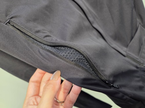 胸元の左右のファスナーはベンチレーション用。暑さを感じた時はスマートに排熱・換気を行えます。