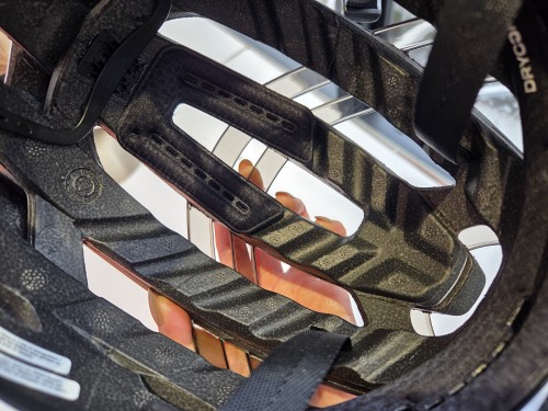 これはGIROが開発したMIPSを組み合わせた安全機構。2層のEPPフォームがボールとソケットのように作動し、衝撃時、 最初の1000分の2秒時にヘルメットと頭の間が10~15mm動くことで衝撃の際に生じる回転エネルギーから頭を守ります。
