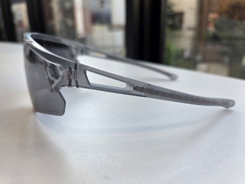 調光レンズ採用モデルです。調光レンズというのは、紫外線量によりレンズ色の濃さが変化するレンズで、レンズ交換をせずに時間帯、環境問わず広くお使いいただけるレンズです。カテゴリーは1から3。薄く色の付いた状態から、日中の強い日差しでは濃く変化し日差しに対応します。