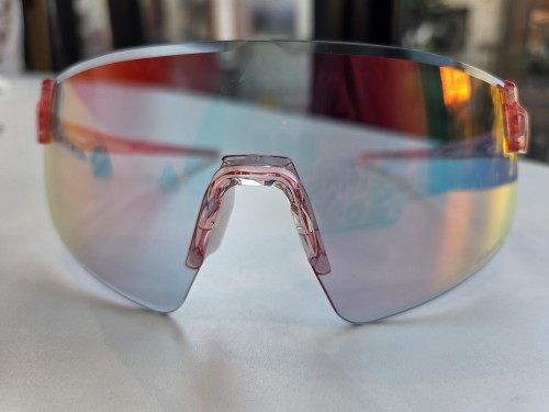 ランニングの動きでもアイウェアが安定するソフトフィットノーズを採用しています。レンズにはC面カットが施され、レンズが際立ち、より立体感を感じさせます。