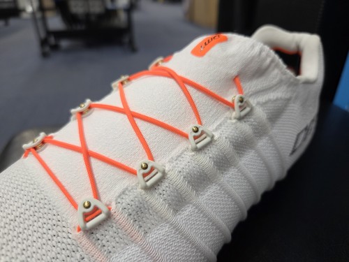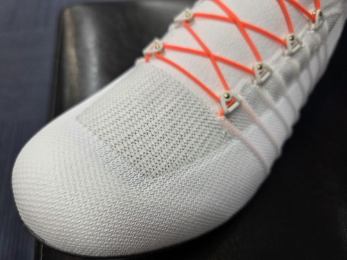 優れたフィット感と空力力学、強度の完璧な融合を実現しているニット技術のアッパーはそのままに、プーリーを採用した新しいシューレースシステムをPOGI’Sから引き続き採用しています。