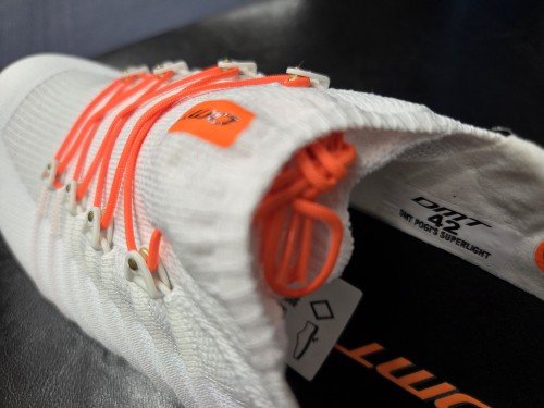 当社独自のニットテクノロジーは、先進的な新しい糸によって強化。エアロダイナミクス、強度、そして機能的で未来的な外観と、DMTシューズの歴史の中でも特別なものに仕上がっています。