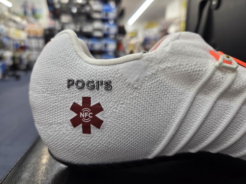 外側に大きくブランドロゴが。踵の内側にはモデル名「POGI’S」のロゴが入っています。