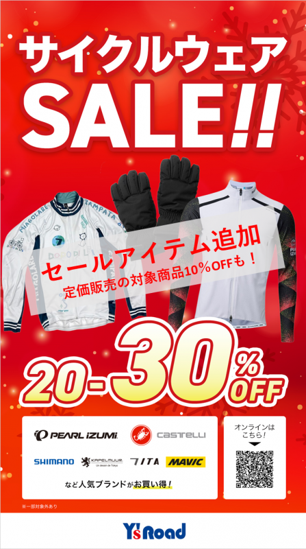 日本最大級のスポーツサイクル専門店!サイクルライフサポート!サイクルウェアのことならY's Road 川崎ウェア館にお任せください!