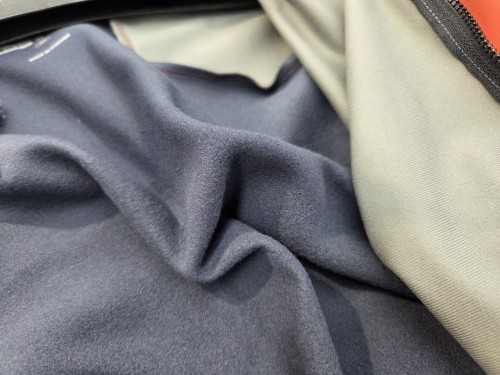 更に、背面や脇、袖の一部には蒸れや熱の籠りを抑える為フリース素材を組み合わせています。