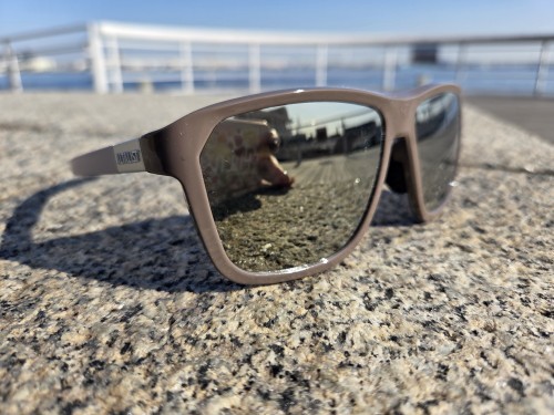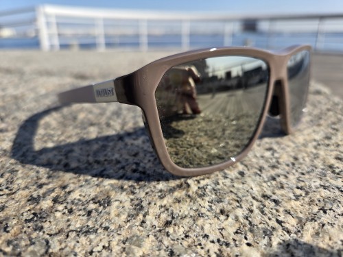 今回レビューでお借りしたのが、ダークブラウンベージュ/ブロンズ。レンズ透過率13.36でCat.3。日中の強い日差しもカバーするレンズカラーです。重量は30グラムとなっています。