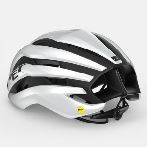 Fidlock®マグネットバックルにより、ヘルメットの固定がより簡単かつ迅速になりました。この機能により、トライアスロンのトランジションタイムを効果的に短縮することができます。エアロヘルメットでありながら、METの特徴であるNACA ベンチレーションにより優れたクーリング性能を確保しています。