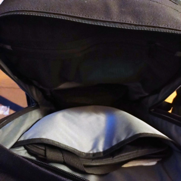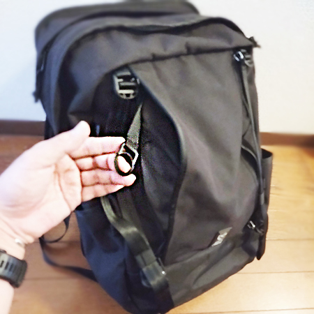 まず気に入ったポイントは電車内で前側に抱えた時に、サイドポケットがあることで、スマホや財布にアクセスしやすいところ。