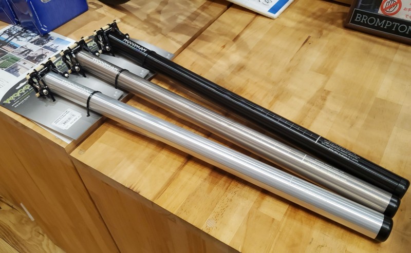 WOODMAN POST GT2はカラーラインナップが豊富で10種類以上(ブラック、シルバー、チタン、ブルー、レッド、ピンク、ゴールド、オレンジ、ピューター、パープル、ティファニーブルー)ございます!店頭に無いカラーもお取り寄せ可能です!同じくBROMPTON用のロング(600mm)タイプもメーカーラインナップされています!こちらも店頭にてご注文も承っておりますので是非!