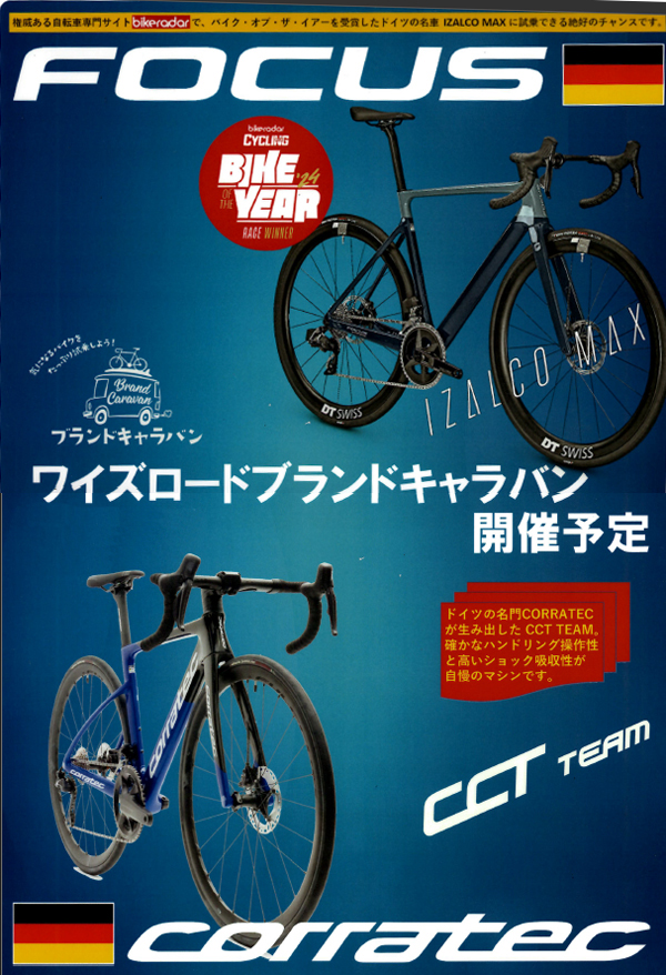 ワイズロード川崎店では6/7~8にドイツブランド2社のFOCUSとCorratech試乗会を開催します。