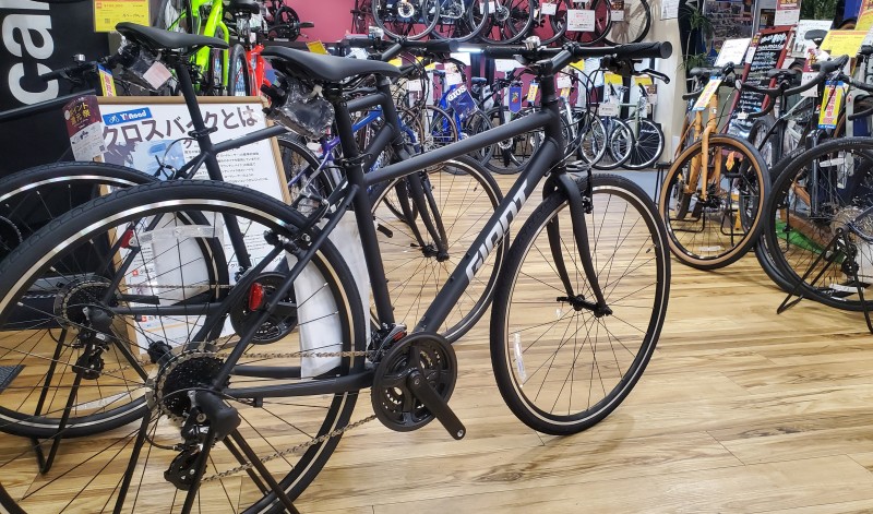 ひと昔前はクロスバイク=700×28Cタイヤ(ロードは700×23Cもしくは700×25C)がポピュラーでしたが時代がすすみタイヤの太さが太くなっていっています!700×35Cや38Cなんて太さのタイヤを搭載したクロスバイクも珍しくありません!時代の流れに沿ってGIANTのESCAPE R3も700×28Cではなく32Cとなっていますが極端に太くなっているわけでもありませんね!