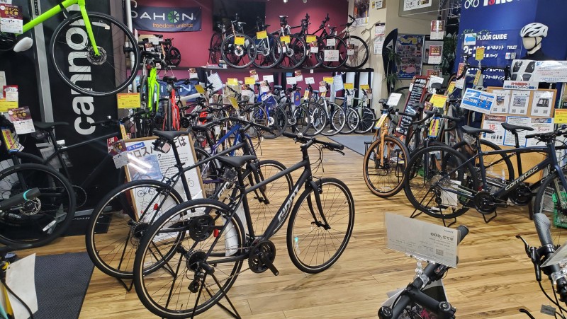 ワイズロード川崎店のクロスバイクコーナー在庫充実しています!