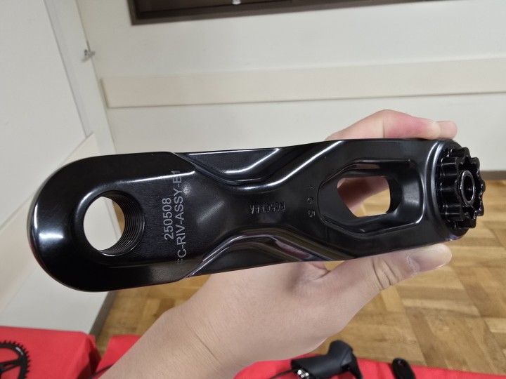 パワーメーターとチェーンリングが一体型じゃなくなり、安価にチェーンリングが交換できるようになりました。