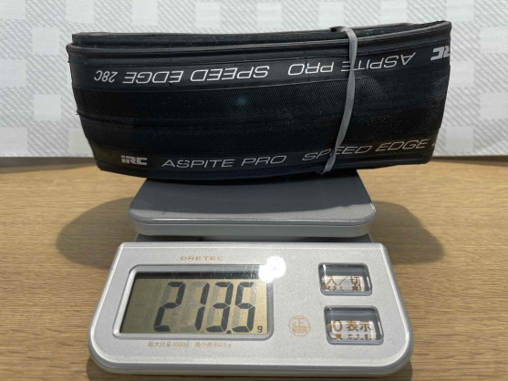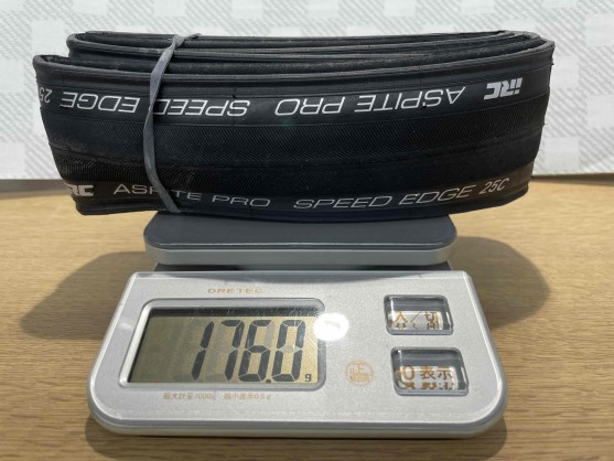パナレーサーのアジリストライトとほぼ同じ重量でかなり軽いタイヤです。