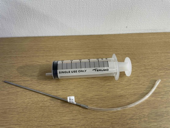 シーラントをタイヤ内に注入しタイヤ内部に薄い皮膜を形成する作業をしたら施工後は残ったシーラントは抜き取ってしまうのがマクハルです。