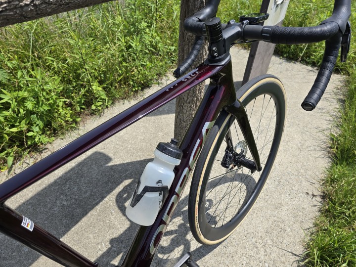 平地では、フレームの推進力が高く平地での巡航性能が高いので気になりませんが、速度域がさらに高いダウンヒルになると最近のエアロフレームと比べ速度が伸びにくく感じました。