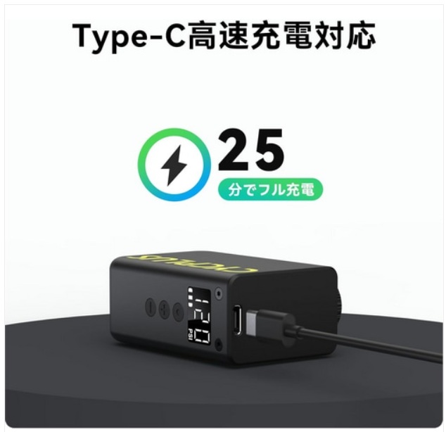 また、充電ケーブルの規格は「Type-C」高速充電対応で、25分でフル充電できます!