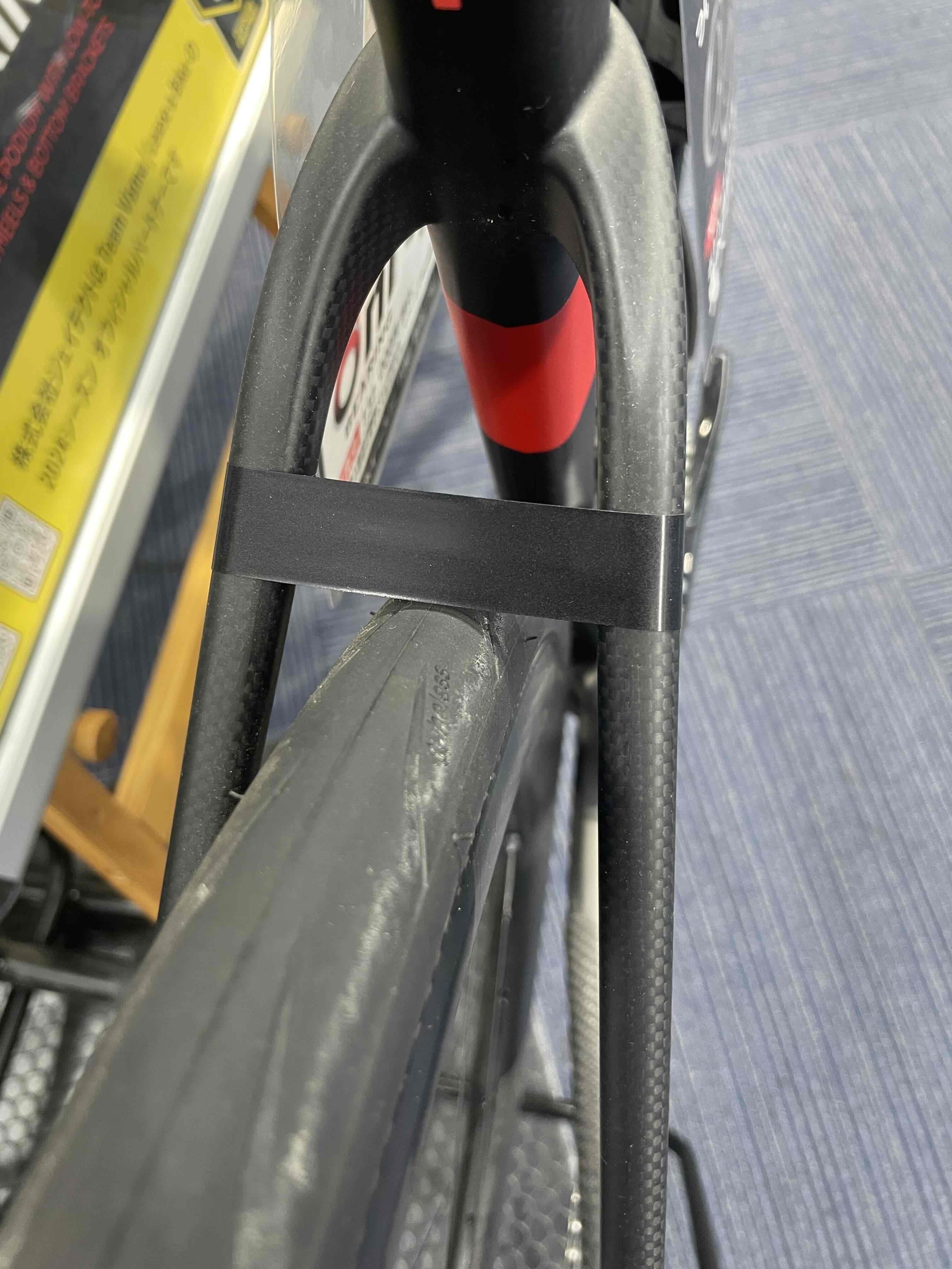 ビニールテープをタイヤにこすれるかこすれないかぐらいのギリギリの位置に貼っておきます。