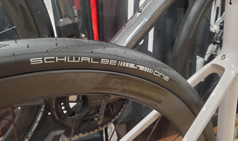 完成車の場合タイヤのグレードが車体全体と釣り合っていないグレード場合が多いのですがADDICT 30はSCHWALBE ONEが標準搭載されています!ロードバイクサイズの場合PRO ONEという更なるハイエンドタイヤが登場しましたがそれでもONEは当店スタッフ内でも人気のタイヤです!