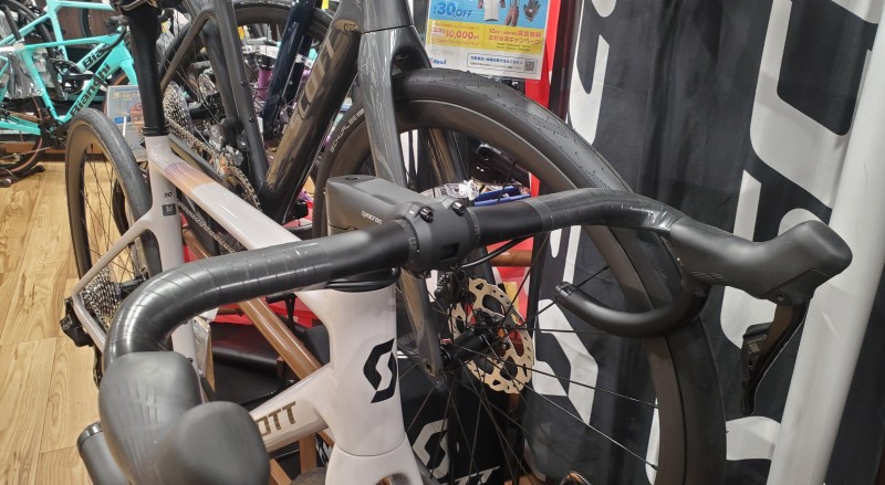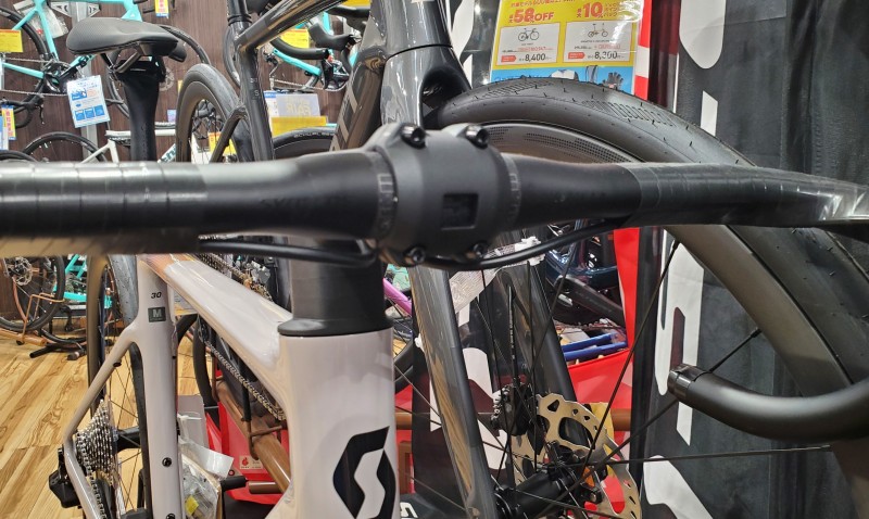 カーボンハンドルはアルミと比べて軽いだけでなく振動吸収を収める効果も高いため、ADDICTの30グレードの場合フレームだけでなくハンドルによる乗り心地の良さもあります!