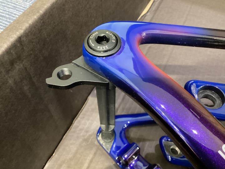 スポーツバイクの中でもかなりデリケートなパーツであるリアディレイラーを無くし、UDH対応のフレームへサンドイッチするようにがっちりと固定される方式です。