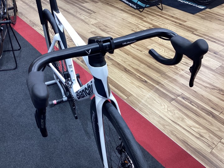 ハンドルは VELOMANN の内装ハンドルが採用されており、ブレーキホースはハンドル内に内装されています。