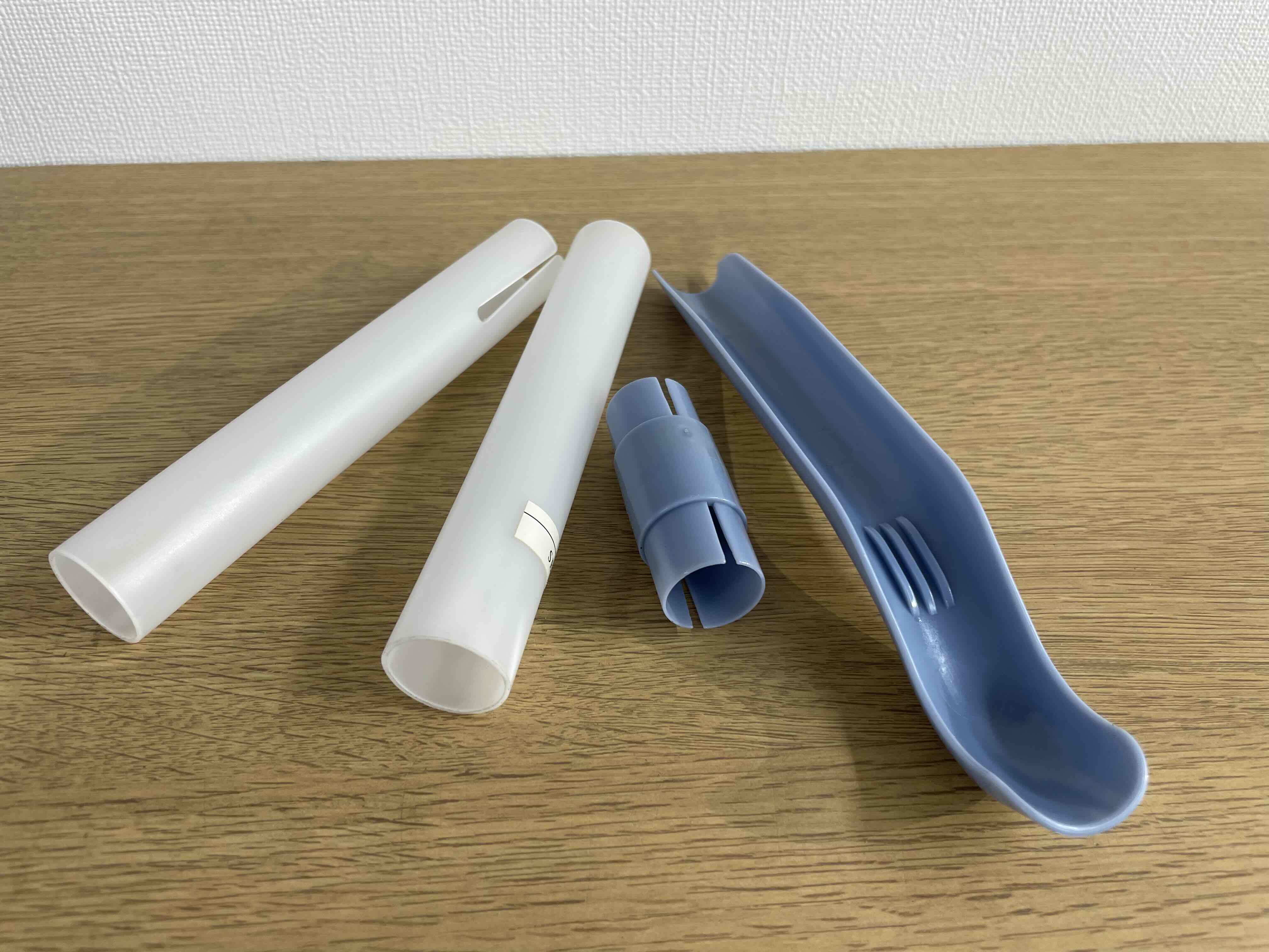 2本の筒をブラケットを境に通して入れてブラケットのあたりで重ねます。